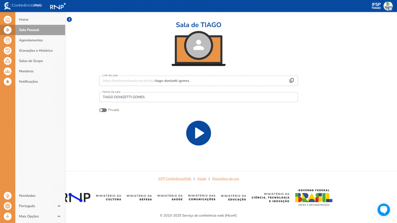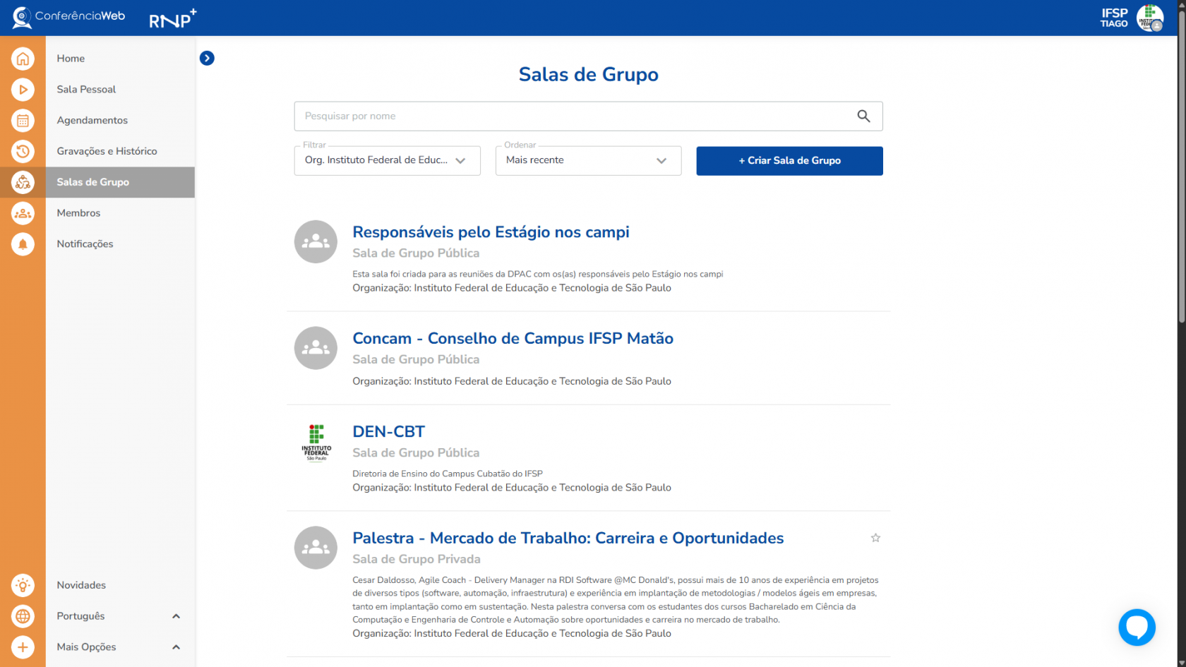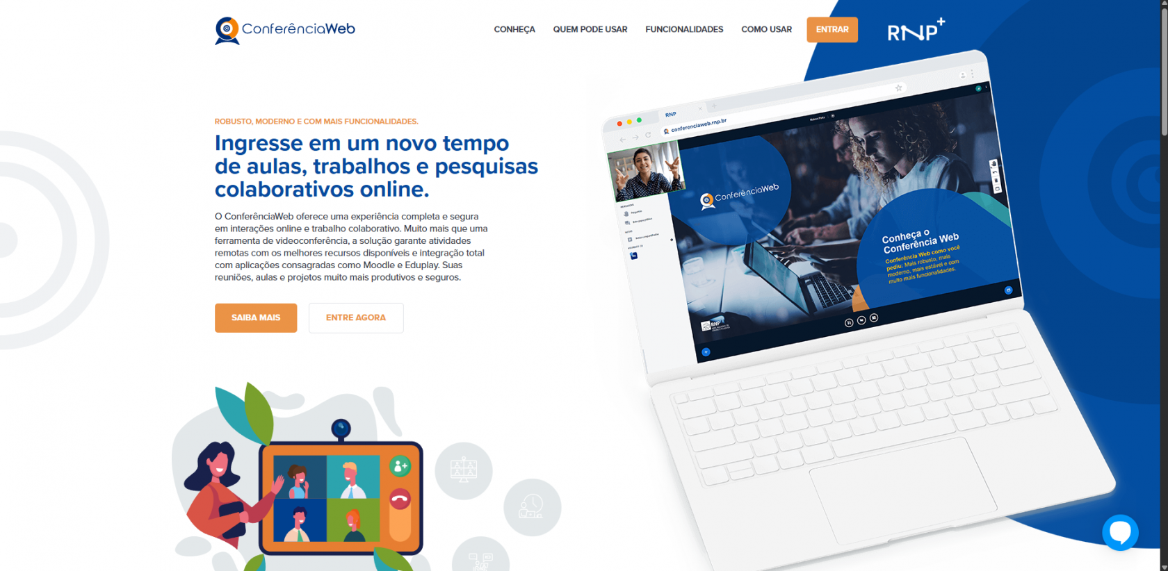 O ConferênciaWeb RNP é uma plataforma de webconferência desenvolvida e mantida pela Rede Nacional de Ensino e Pesquisa (RNP), voltada para instituições de ensino, pesquisa e órgãos governamentais. A ferramenta permite a realização de reuniões, aulas e eventos online com recursos de áudio, vídeo, compartilhamento de tela, enquetes, salas de apoio e outras funcionalidades interativas, sempre em ambiente seguro e integrado às credenciais institucionais (CAFe).