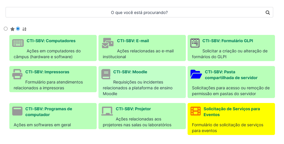 1️⃣ Acesse o GLPI 👉 glpi.sbv.ifsp.edu.br e escolha uma categoria de serviço: