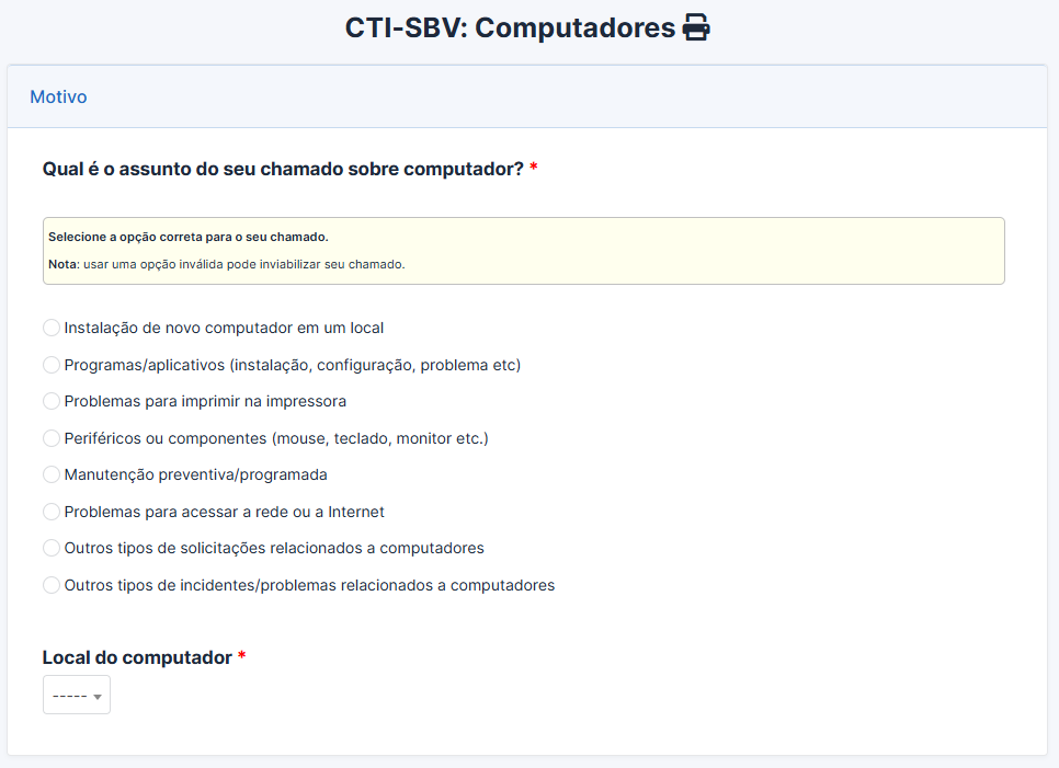 Dica: Sempre forneça o máximo de informações possíveis, como horários, locais, mensagens de erro, fotos ou prints. Isso evita atrasos e retrabalho.